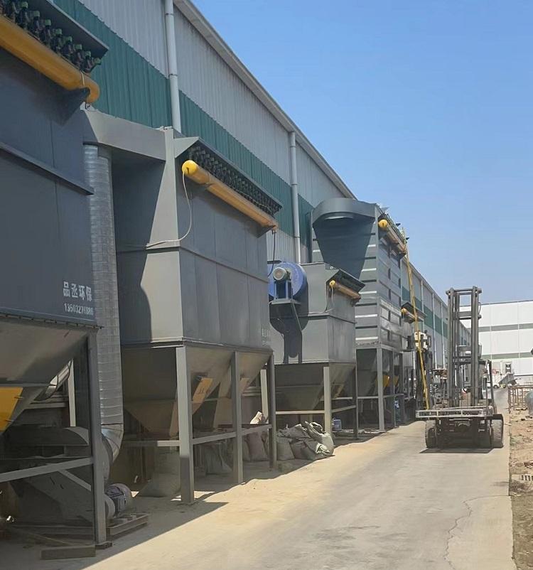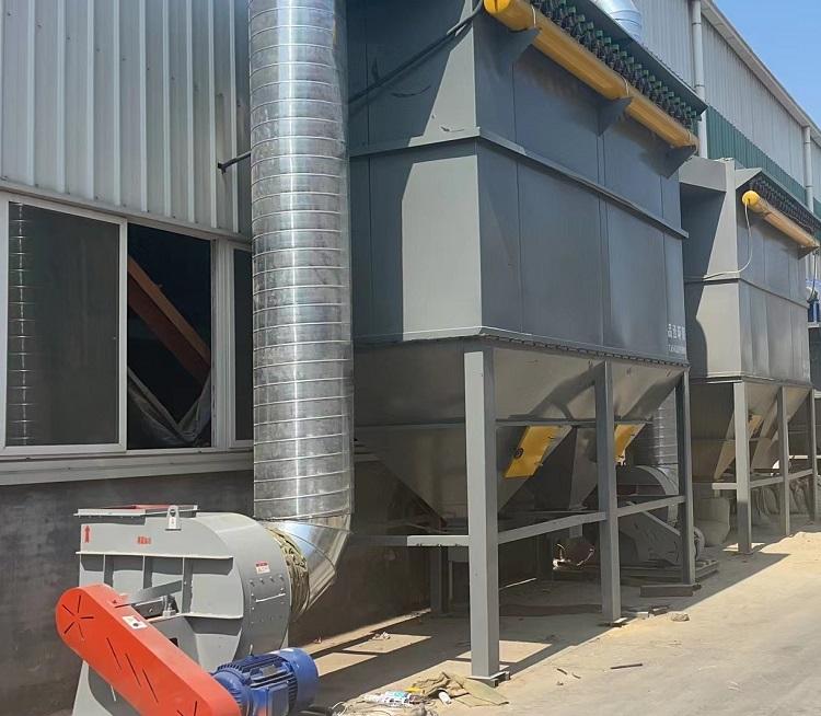 在糧食加工廠安裝的一溜布袋除塵器,配套的有單機除塵器,有旋風除塵器,客戶滿意的很,這兩天又安裝了一套。
